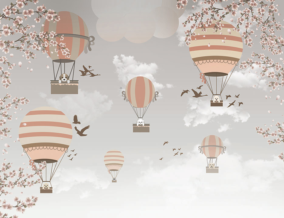 - Рисунок: Воздушный шар, Небо, Сакура, Мультгерои